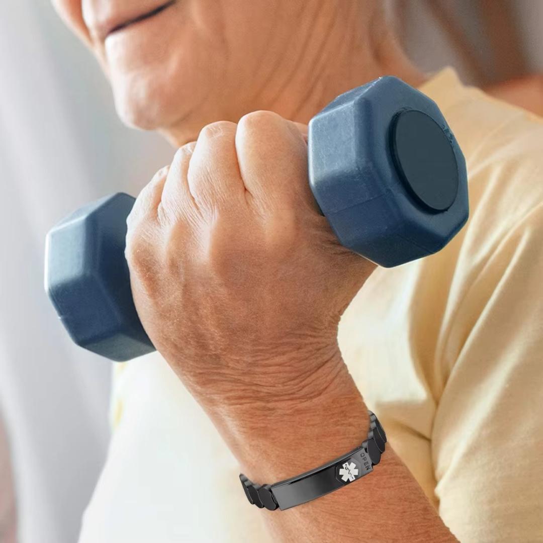 Designed with both discretion and durability in mind, the BlackVault is a clever take on medical ID jewellery. Its elegant black tone pairs beautifully with its innovative lift-up plate — discreetly concealing a custom medical info note while also offering full engraving on both sides. Lightweight yet secure, it offers comfort, convenience, and peace of mind in a stylish everyday piece.
